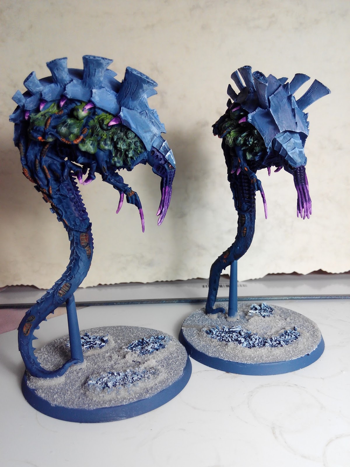 He aprovechado la nieve que en principio compré para las peanas de los Tiránidos en las de los Marines Espaciales del Caos, obteniendo así una doble textura que me ha gustado bastante y les otorga más detalle.